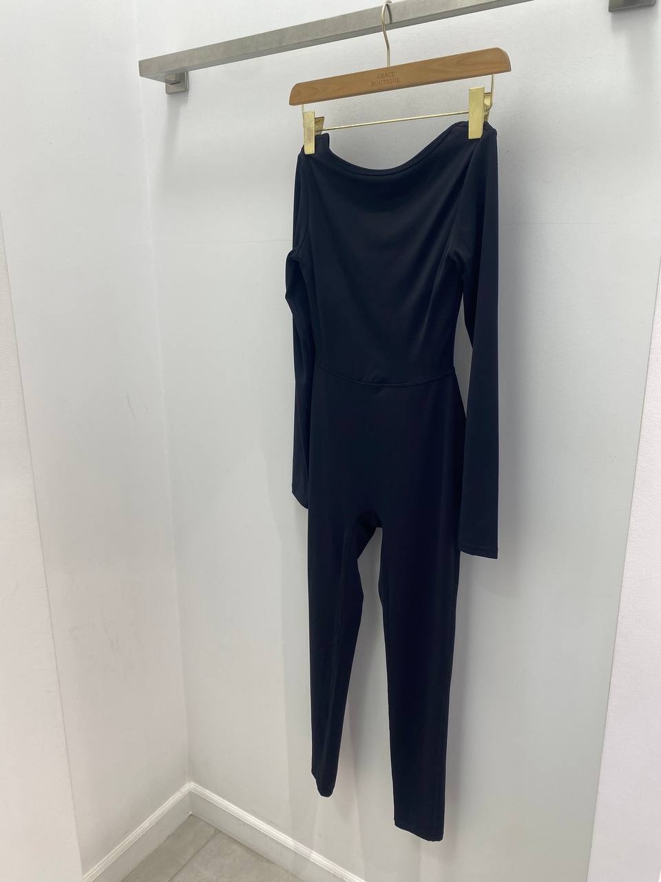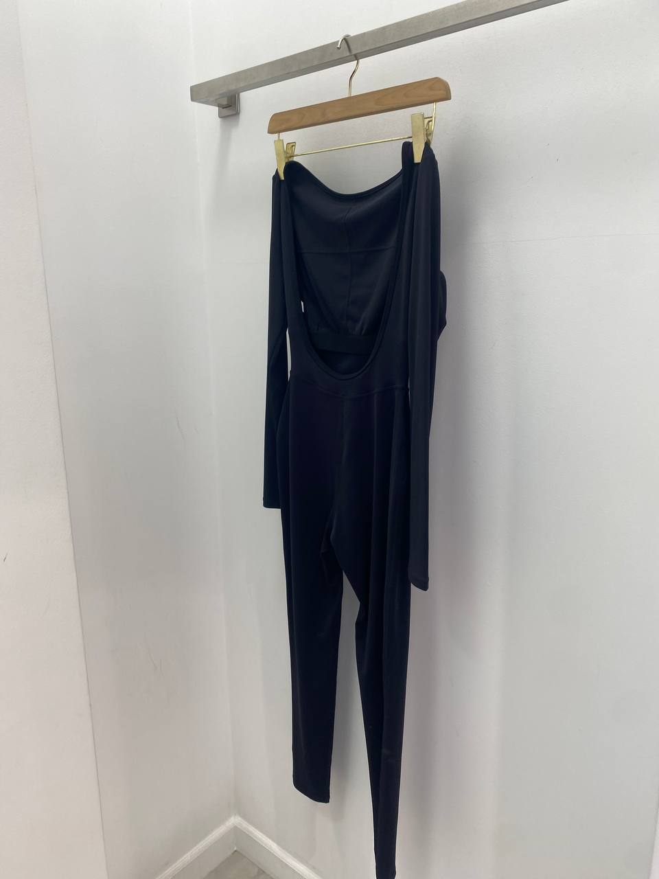 Black long sleeves,backless jumpsuit.