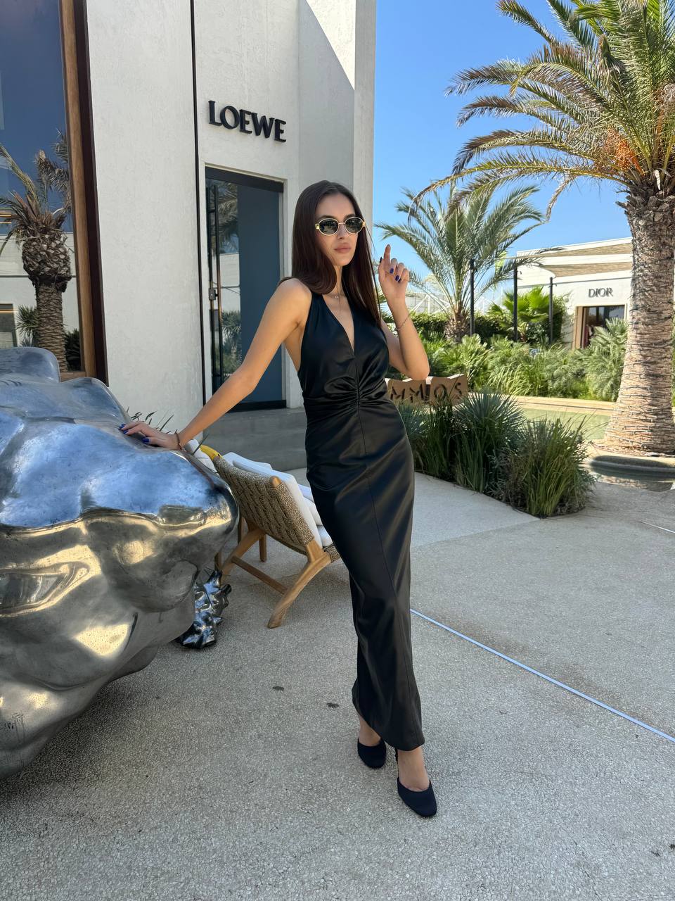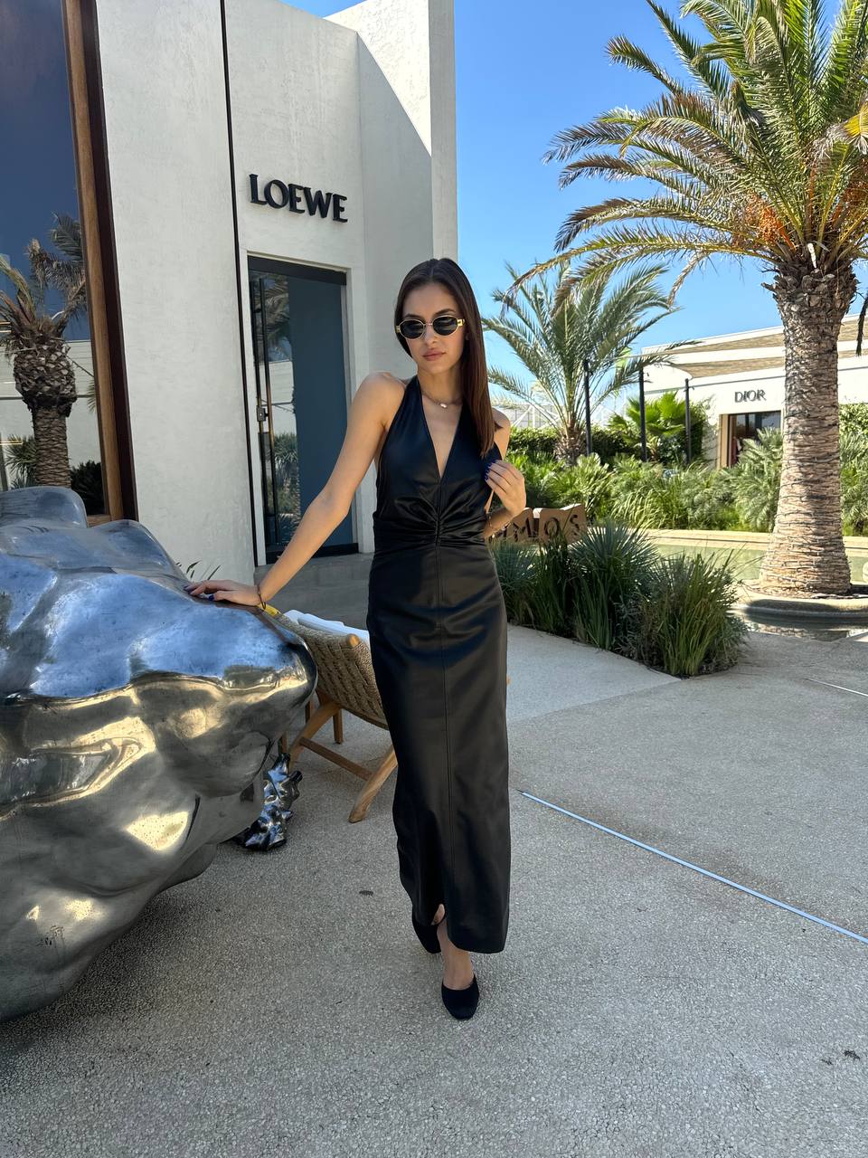 Faux- leather midi dress