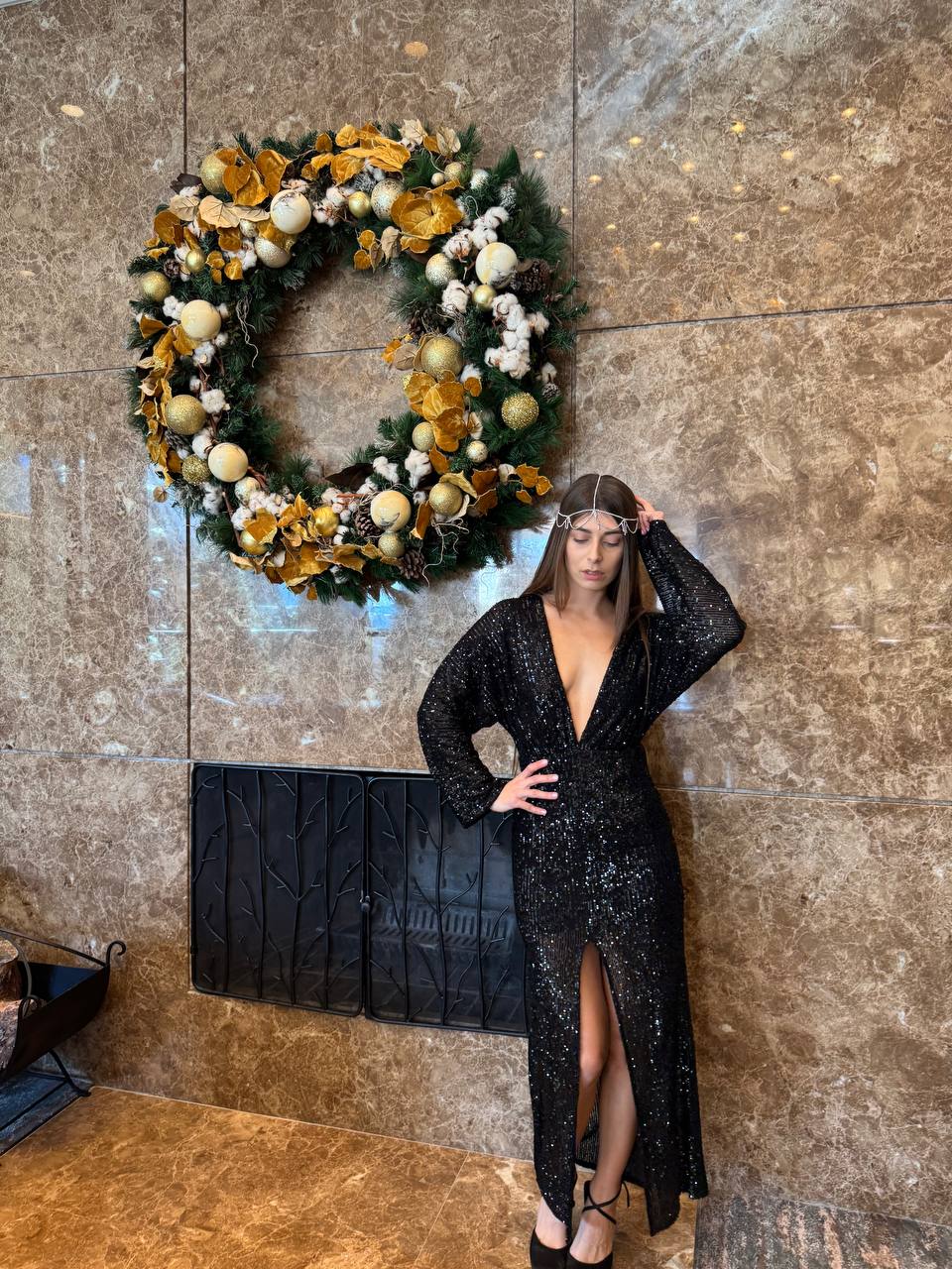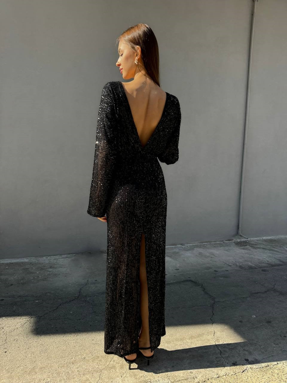 This sequin stunning dress can be worn in two ways.You can wear it as a backless dress,or another way when the cut will be in the front.