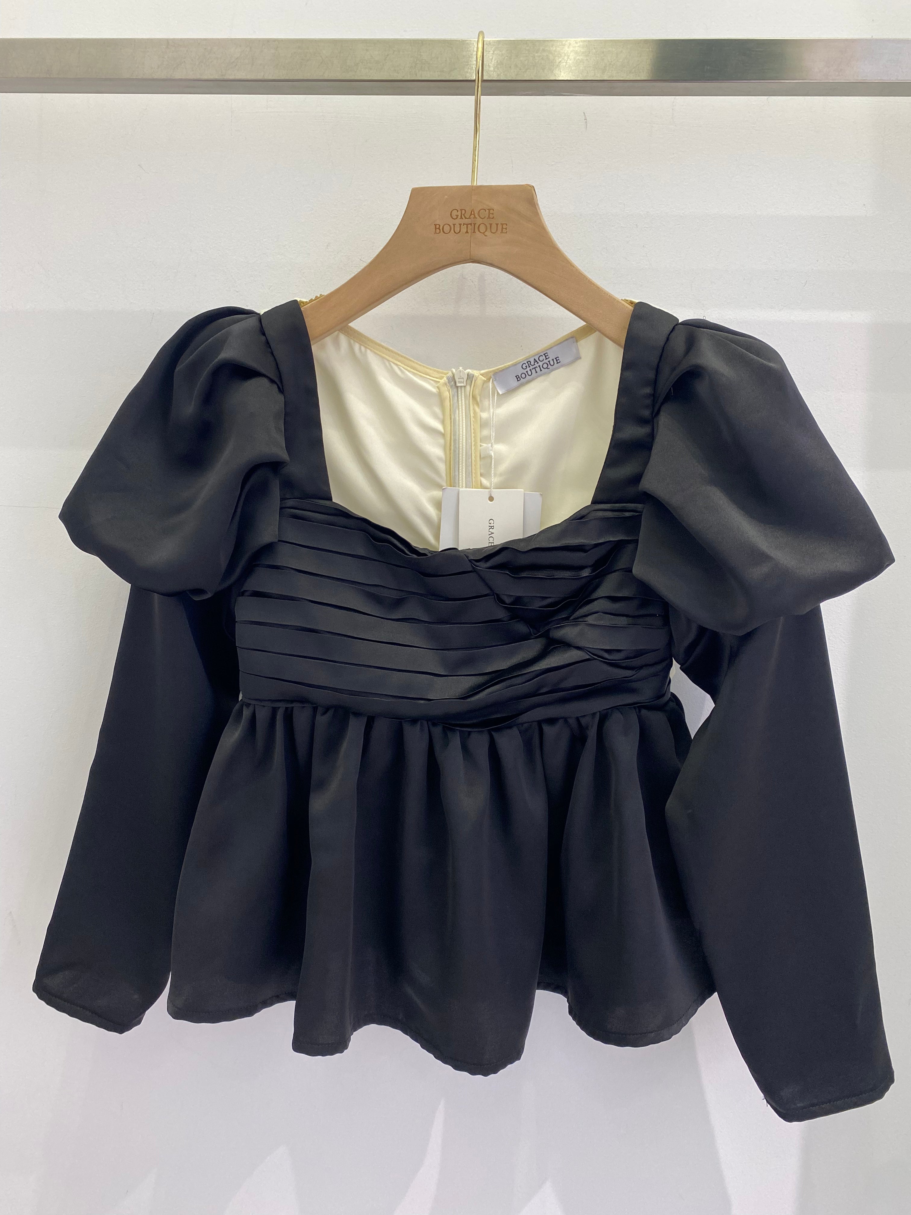 Puff sleeves black top