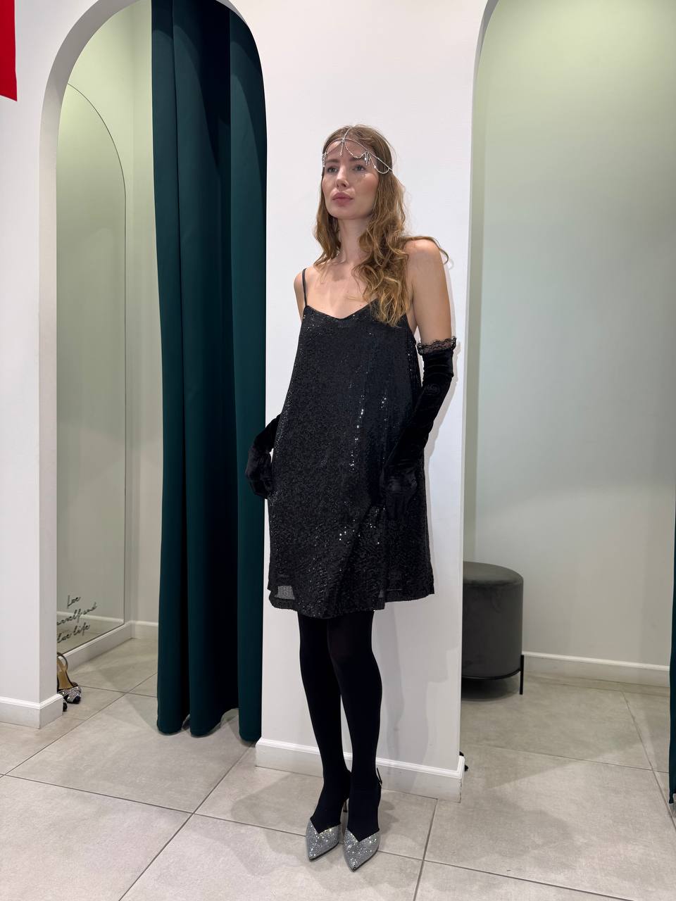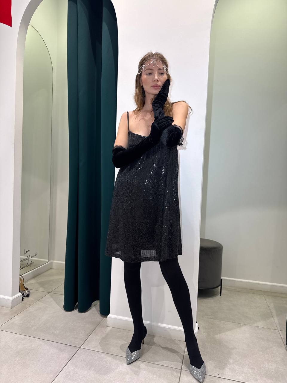 Sequin-embellished black dress