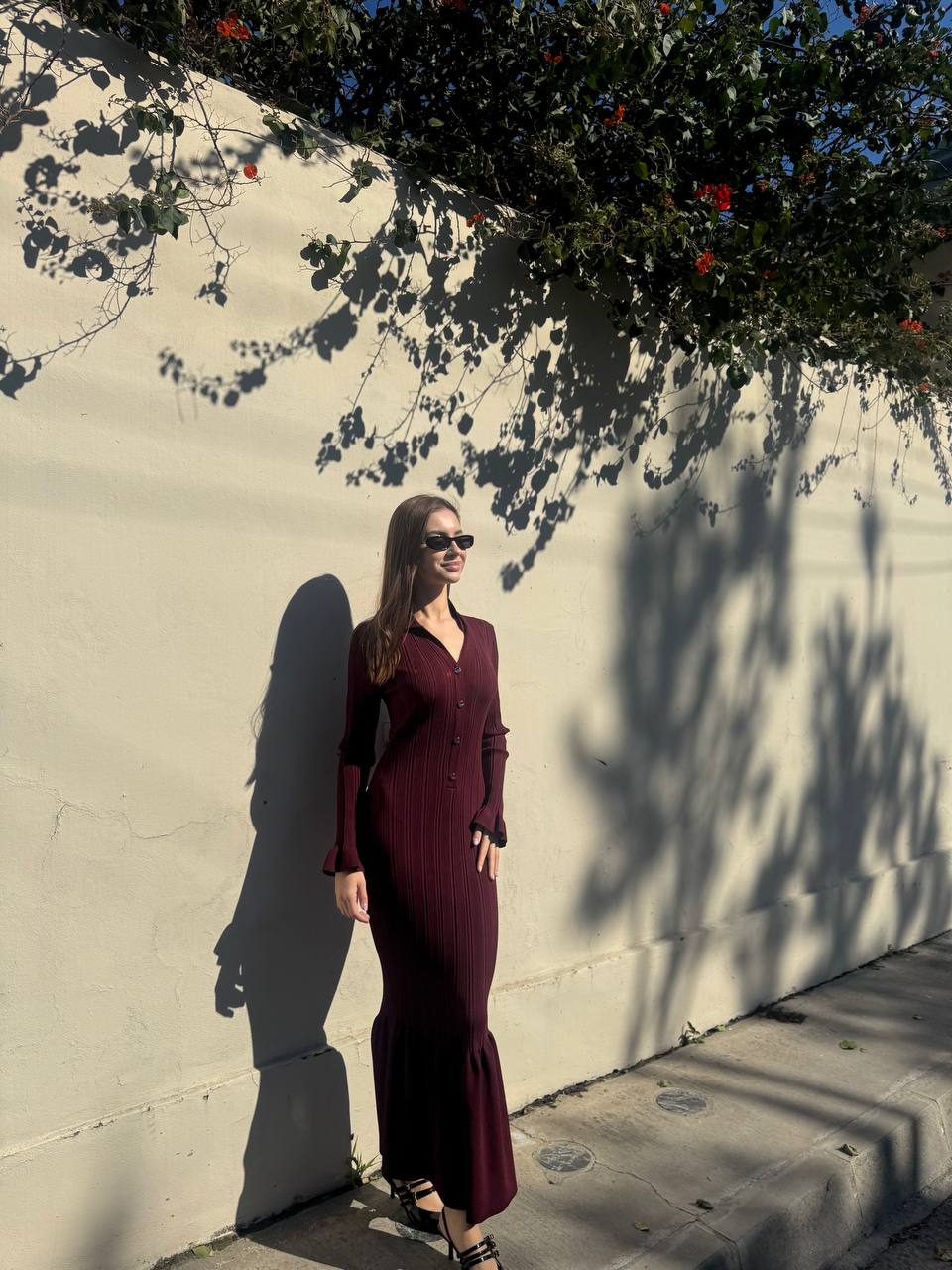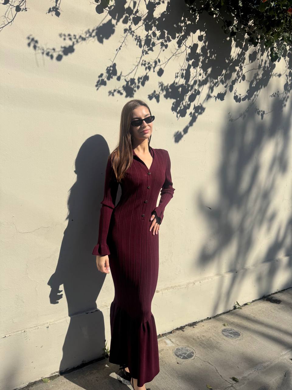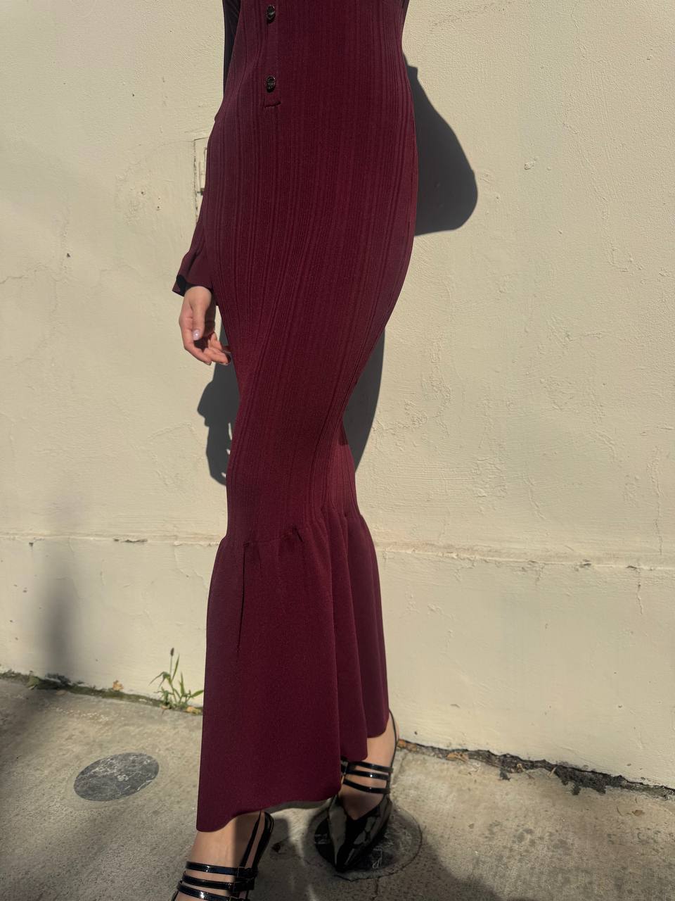 Crafted from ribbed knit for a sculpted feel, this versatile dress features a body-hugging fit and a fish tail skirt designed to flatter your silhouette